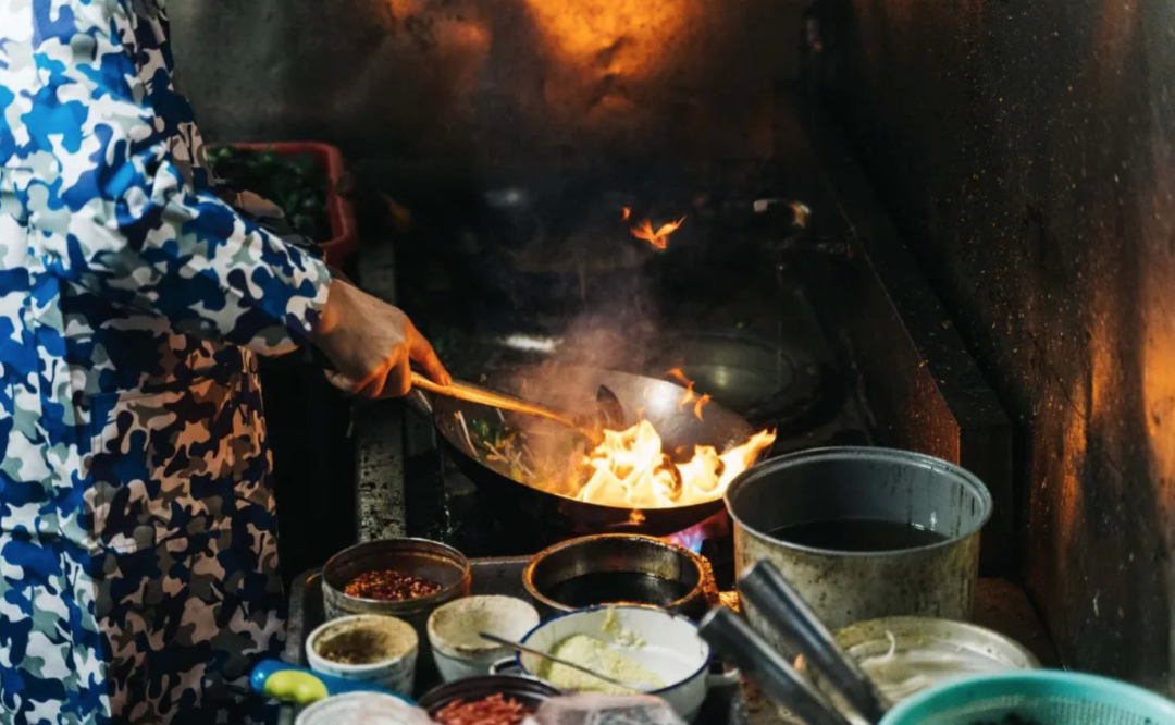 大火起油,沒在怕的;米粉下鍋,乾淨利落;油鹽醬醋,井井有條;肉絲、豆芽、青菜,錦上添花。一鍋成型,一氣呵成,米粉是完全炒透的那種香。