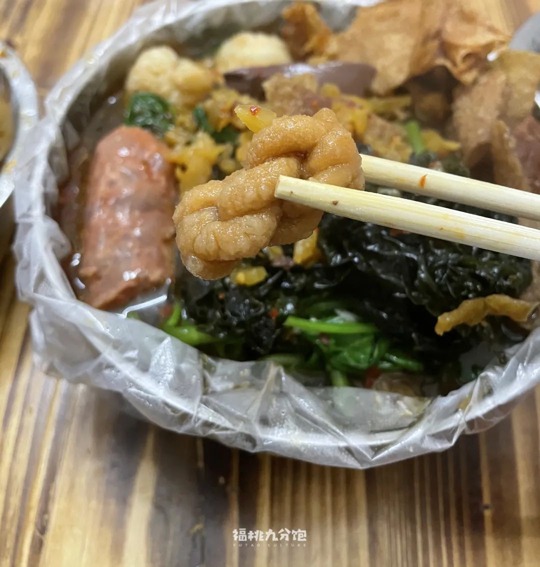 有豆腸,就是類似於手指形狀的,帶着孔隙的豆製品,吸了湯以後比香腸還好吃。