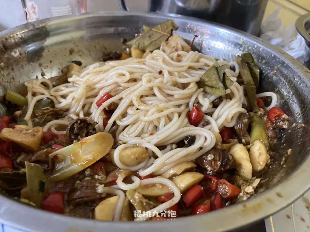 她先拿一個鍋現場煮粉,然後端起一個、像我這種滬漂青年才會有的、一人份的煮麪小鍋、的破舊版,就開始拌粉,一勺鹽、一勺糖、兩勺熟油(煮過的醬油)、辣油、一點點骨湯、蘿蔔乾、豆角、剁椒、辣椒、榨菜……再現場汆一下醃漬過的豬肝,挖一勺帶着滷汁的大腸,一邊拌一邊跟我説:“小心別濺到。”