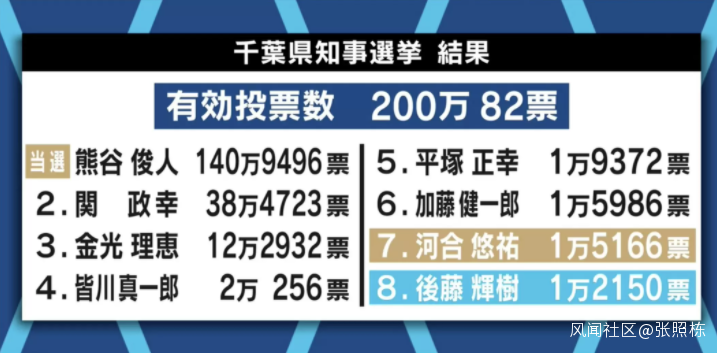 而豪言要把千葉打造成迪士尼的河合悠祐也未能如願,他以4000票左右的劣勢,輸給了自己的“政敵”平塚正幸。