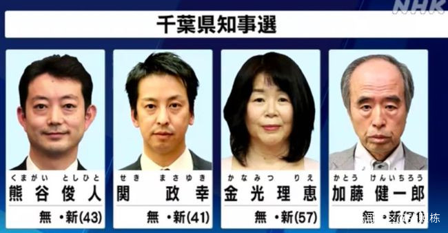 今年千葉縣知事的選舉,共有8人報名參加競選,其中有政治背景的是千葉市前市長熊谷俊人,原日本自民黨縣議員關政幸和日本共產黨推薦的補習學校講師金光理惠。