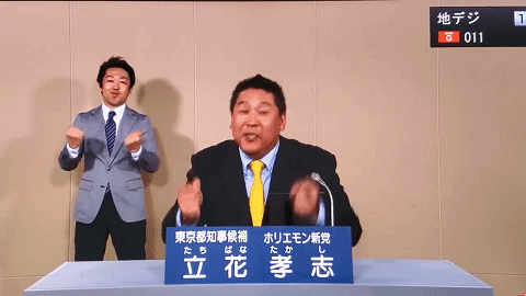後藤輝樹早在2016年就參加了東京都知事的選舉。在他當年6分鐘的競選演講視頻裏,頻頻使用敏感詞彙,逼得NHK電視台不得不做大量的消音處理。