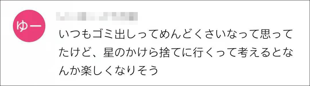 “一直覺得扔垃圾很麻煩,但一想到扔星星的碎片,就覺得很開心。”