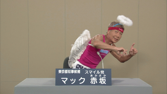 而在去年的東京都知事選舉中,後藤輝樹則更加放飛自我。他直接在演講中脱掉衣服,只穿一件成人尿不濕,躺在競選講台上。