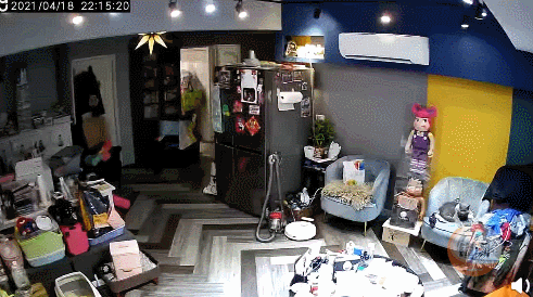 根據報道,這一可可愛愛的一幕被居民家中監控攝下。