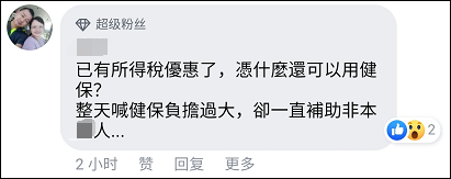 部分島內網友還質疑,黃秋生“已有所得税優惠了,憑什麼還可以用健保”,並就此指責台民進黨當局“整天喊健保負擔過大,卻還一直輔助非本地人”。