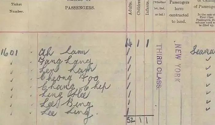 根據記載,當時船上一共有8名中國男性,都是來自最低等的三等艙。