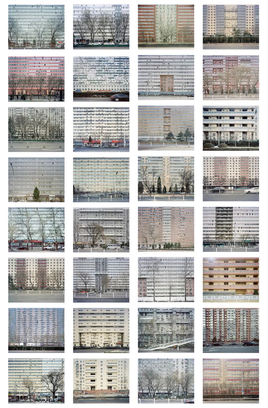 在現實生活中,我們不可能把這麼多的板樓同時拿在一起看。當我們以這樣一種同樣構圖的畫面規則,把所有的樓並在一起的時候,我們可以非常直觀的看出來,它們哪些地方是一樣的,哪些地方是不一樣的,這本身是一個有意思的事。