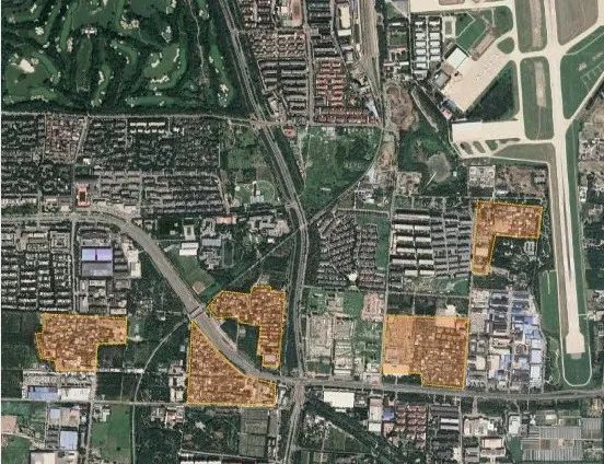 這張是西四環的一張衞星圖,橙色的部分就是我剛才説的那些城中村。按道理來講,離四環這麼近,早該被拆了是吧?不過大家注意,右上角有一個西郊機場,因為有機場在,航空限高,所以周邊大量的地就沒法蓋高樓。