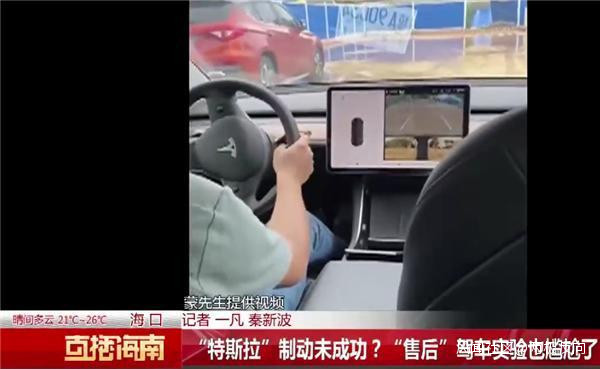 據“直播海南”報道,海南海口的蒙先生在2021年1月份買了一輛特斯拉,3月11日蒙先生開車去單位上班準備停車時,發現車輛根本停不下來。蒙先生反饋表示,制動前的時速大概在20km/h到30km/h左右,制動期間一共踩了三腳剎車,前兩腳點剎都沒有停穩,第三腳踩死後,車輛還是一樣往前衝,直接撞上了前方護欄。蒙先生電話聯繫了特斯拉官方,隨後,售後工作人員來到現場,並駕駛另外一輛特斯拉進行試驗,可在駕駛過程中同樣沒有剎住車開進了溝裏。這一幕被坐在測試車輛後排的蒙先生視頻記錄下來,視頻中顯示,駕駛員踩住剎車,特斯拉並未停下。