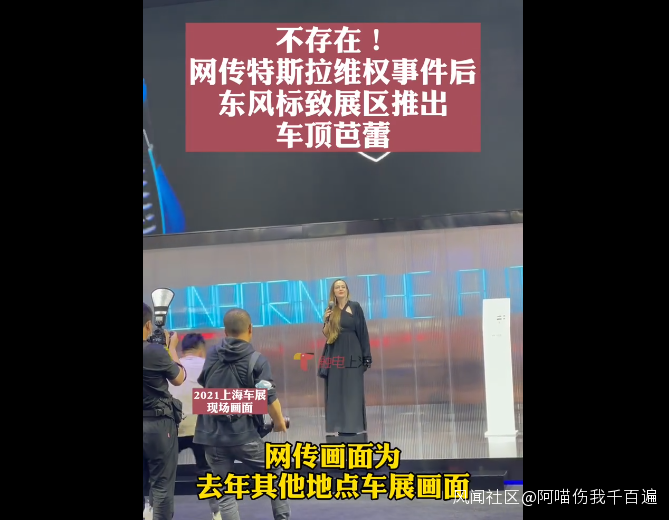 但據廣東廣播電視台上海頻道@觸電新聞上海 21日最新報道,上海車展東風標緻展位的現場工作人員澄清稱,網傳視頻為去年其他地點車展畫面,該車企今年的參展主題、頂棚裝修等細節也與網傳畫面略有不同。