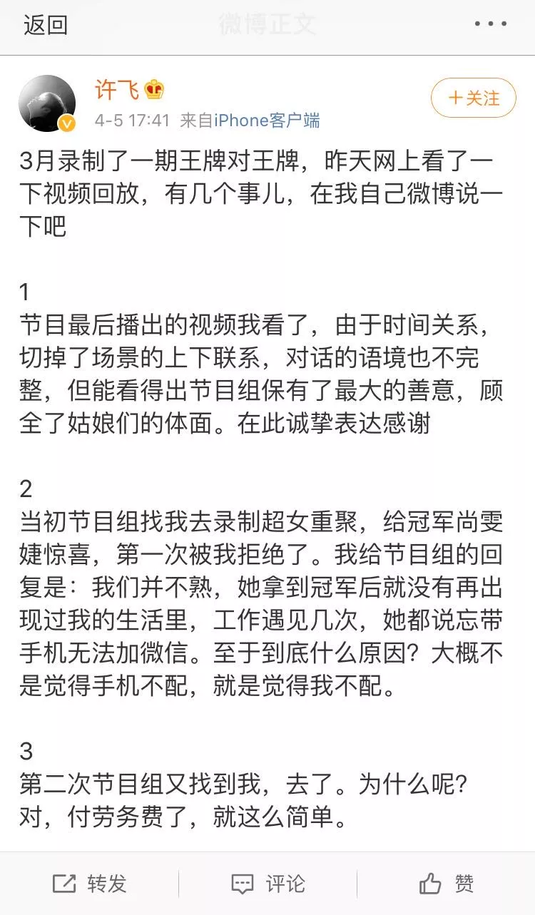 這還沒完。回去以後還在微博上洋洋灑灑來了篇小作文,翻譯過來就是:
