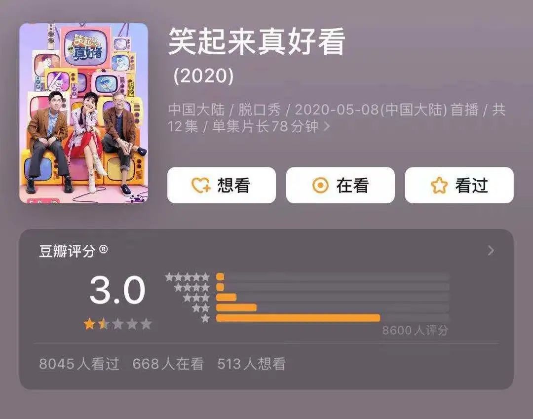 3個人均滿分的老笑骨,湊在一起,讓這部綜藝拿了3.0分。