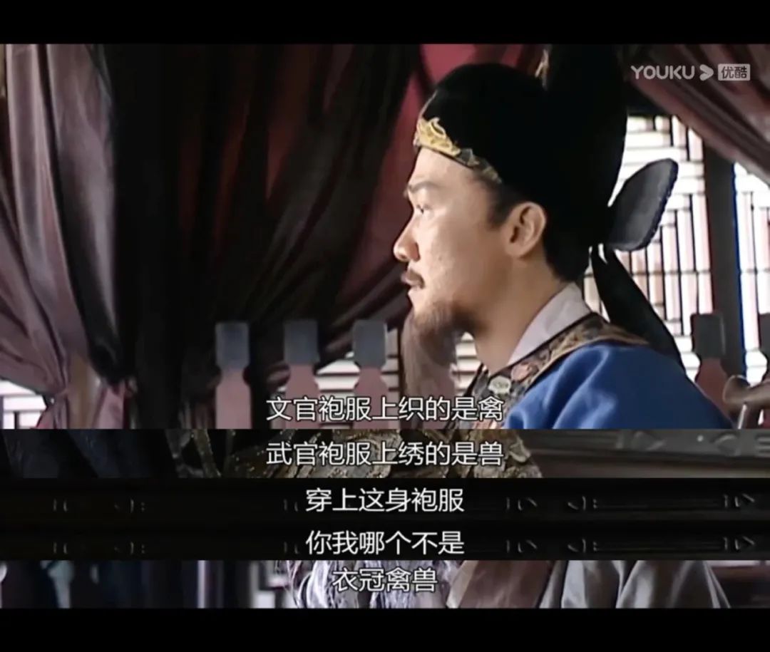 文官袍服上織的是禽,武官袍服上繡的是獸。穿上這身袍服,你我哪個不是衣冠禽獸。