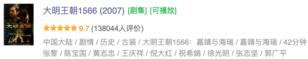 《大明王朝1566》的全稱是《大明王朝1566:嘉靖與海瑞》。