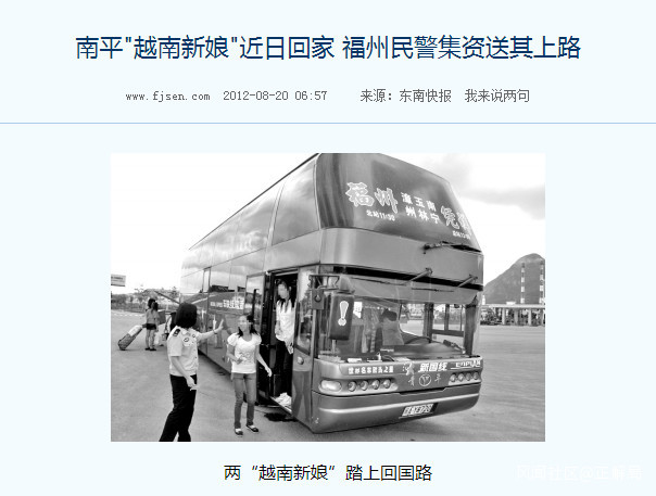 2012年,越南女青年阮某和範某被中介“忽悠”到福建南平,準備嫁給兩户“家庭富足”的人家,成為所謂的越南新娘。