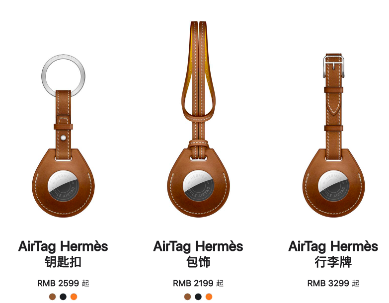 不過,AirTag有“高奢版”愛馬仕版本可供選擇,包括售價2599元的鑰匙扣、2199元的包飾、3299元的行李牌。