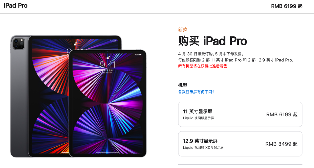 售價方面,11英寸的iPad Pro國內售價6199元起,而12.9英寸的iPad Pro國內售價8499元起。