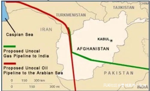 2001年,當美國首次入侵阿富汗時,它正在擴大其中亞地區軍事基礎設施。阿富汗為這一新的"原油淘金熱"提供了一條重要道路,該地區藴含多達2000億桶石油,大約是北海石油儲量的10倍,是波斯灣總儲量的三分之一。當時,阿富汗被進一步重視為一條石油管道的關鍵節點,該輸油管道將繞過俄羅斯,將中亞石油輸送到印度洋。