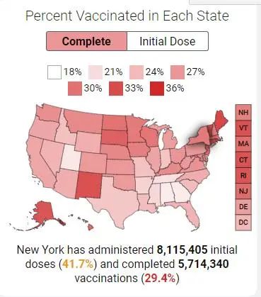 目前,紐約市已經有803萬人打了第一針疫苗,佔比超過了41%。