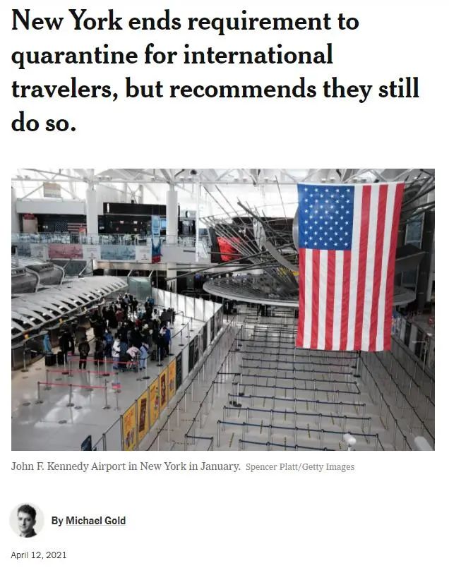 而到了今年,同樣是紐約,最新的信息卻是解除了國內外旅客強行隔離的要求,為進一步開放進行準備。