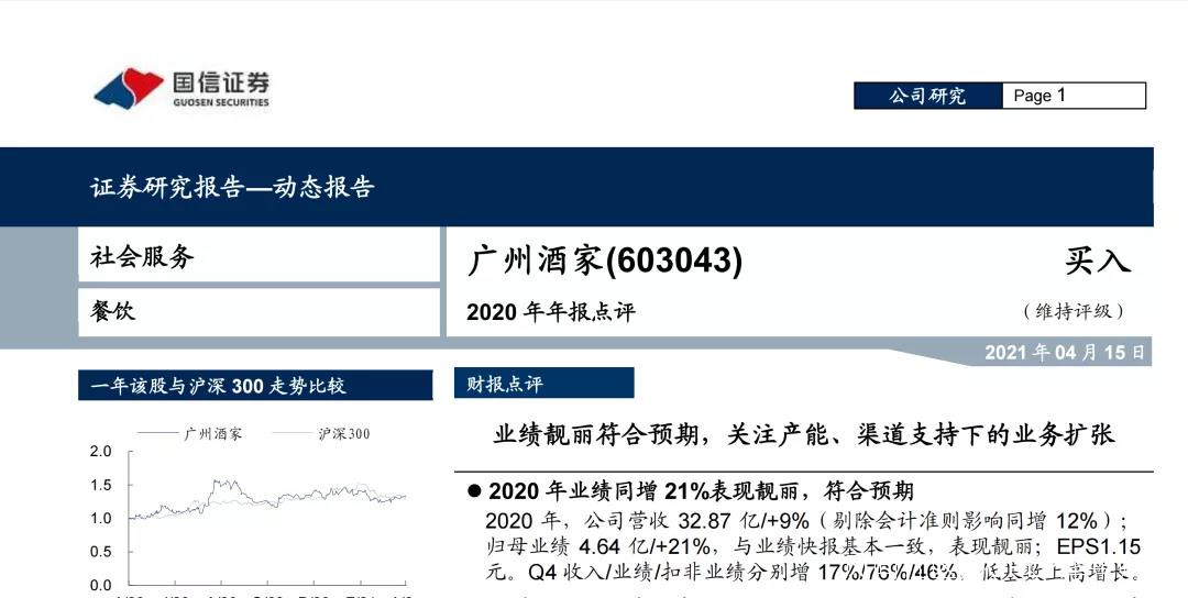 對此,國信證券在其研報當中如此評價廣州酒家: