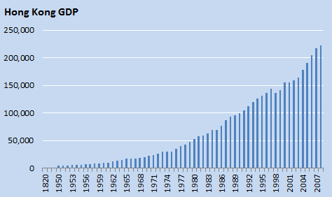 根據陳秉安在《大逃港》裏的描述,1950年,在切斷了香港與大陸的聯繫後,香港經濟遭受重創。但這只是其中一個點。事實上,從1842年的《南京條約》割讓香港島到1898年的“新界租約”佔領香港全境,往後半個多世紀,從GDP看,英國治下的香港從來都不是黎智英心裏的天堂。