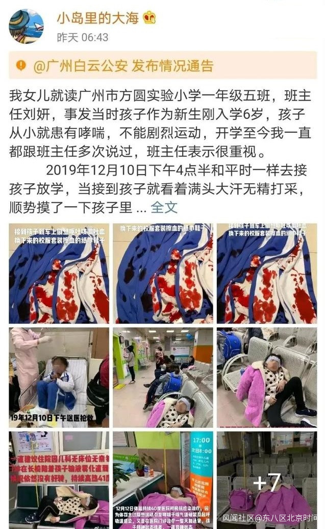大家是否還記得去年微博上的一個熱點事件:一名廣州的家長髮帖,稱女兒被老師體罰致吐血送醫搶救,隨文還附有數張血衣的圖片。