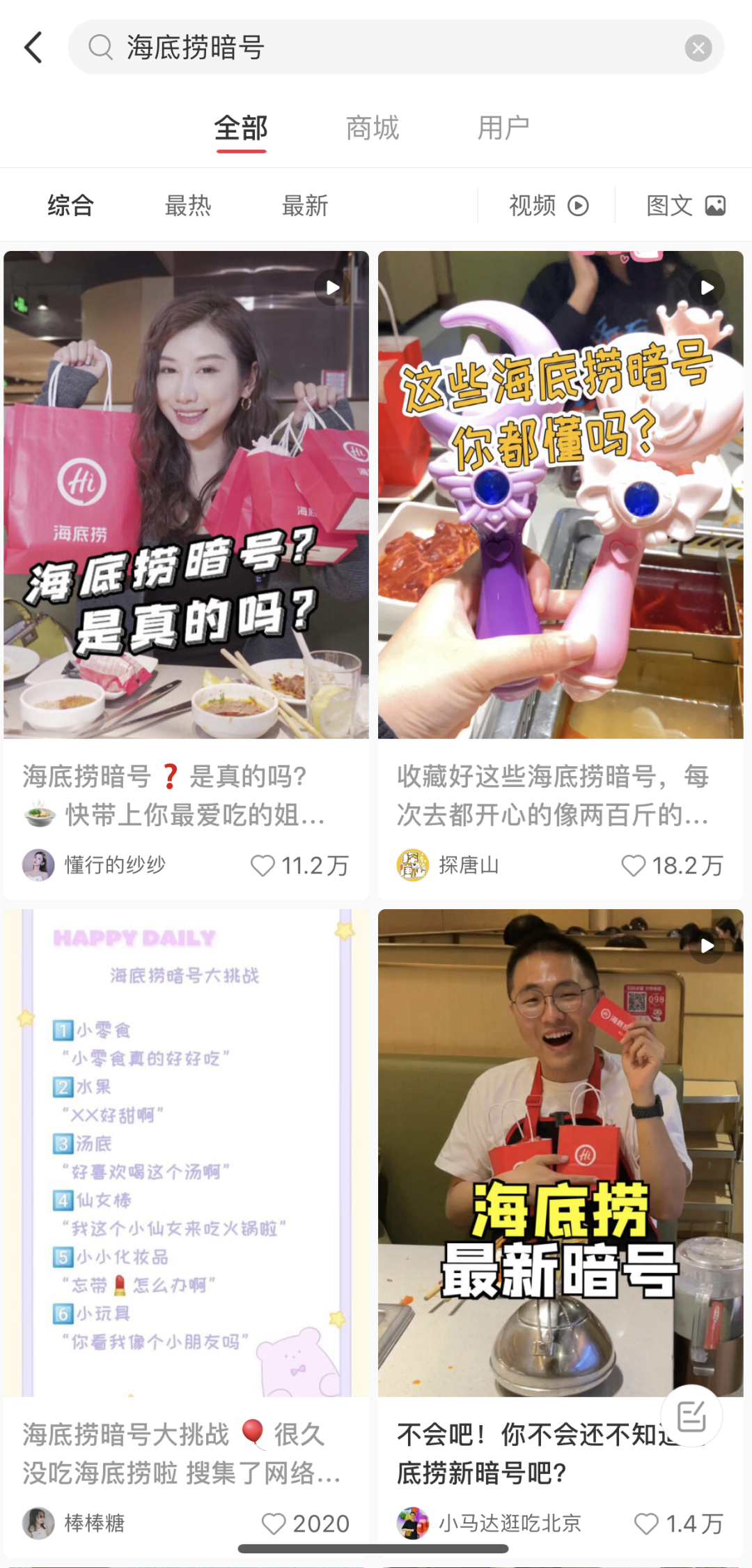“海底撈暗號”成小紅書的熱門內容
