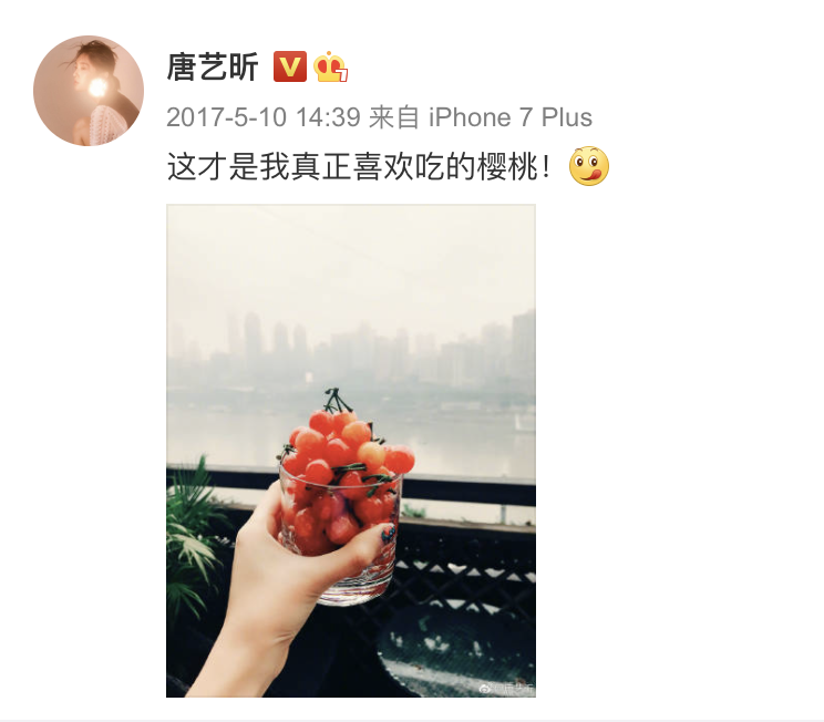 圖源唐藝昕微博