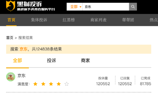 而搜索淘寶和京東,相關投訴則要更少。以另一家電商巨頭京東為例,其投訴量為12萬+,並且已經全部處於回覆狀態。相比而言,拼多多不僅投訴量大,針對投訴回覆佔比較小,也顯得非常突兀。