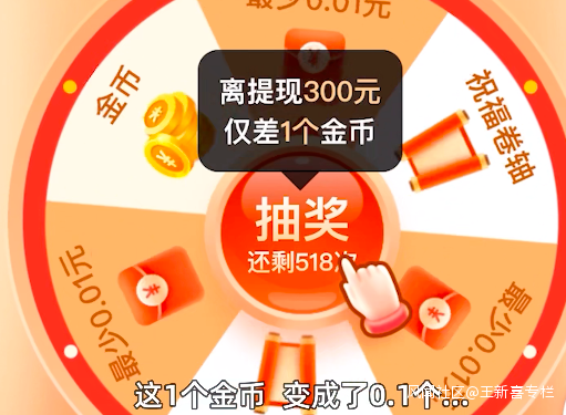 在只差最後1分錢時,抽獎獎勵變成了1金幣(10金幣可換1分錢);