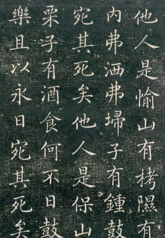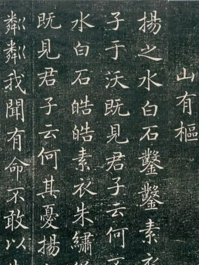 此作是抄寫的詩經當中的內容,字體端莊穩健,筆畫上沒有多大粗細變化,字排布如算子,乍一看,好像完全沒有“褚體”的韻味。