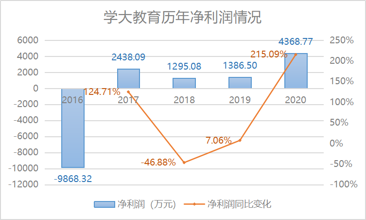 儘管2020年度受疫情“黑天鵝”影響,學大教育淨利潤卻實現了215.09%的同比增幅。