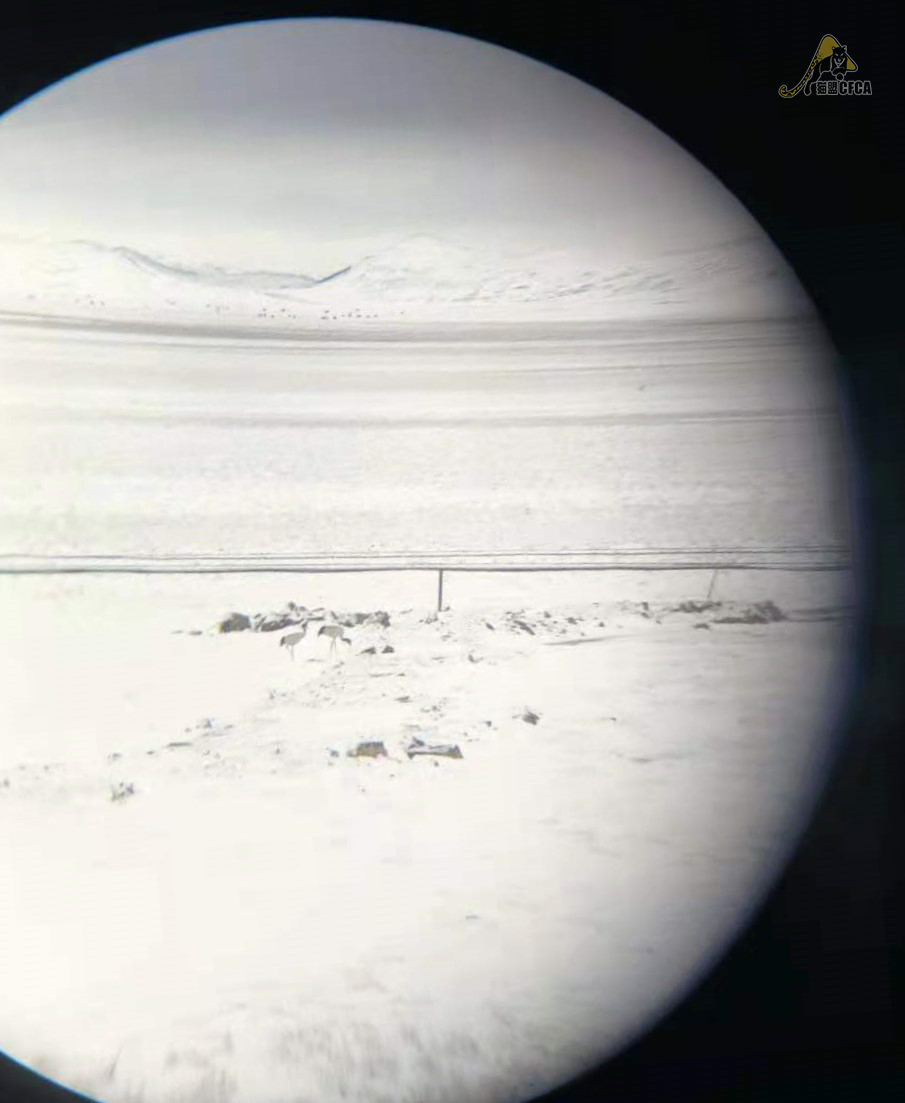 時機不差,當我們離開縣城往黃河邊的唐克方向沒走多久,就看見了雪地上那高挑的身影。