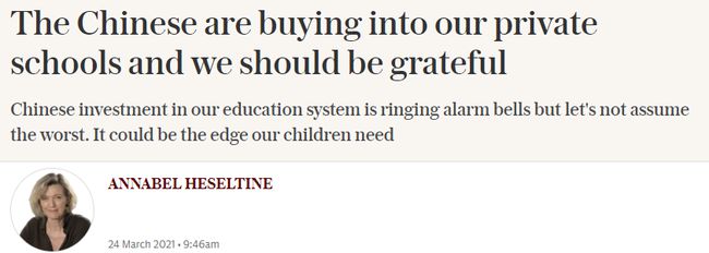 對中國買家此舉,英國評論界爭議比較大。不過,還是有人表示:“我們應當感謝中國投資者拯救了這些學校。”