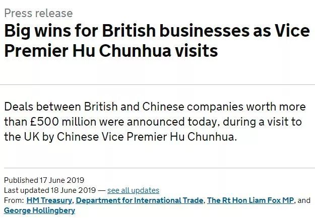 2019年6月17日,第十次中英經濟財金對話在倫敦落下帷幕,除了“滬倫通”(點擊 這裏 查看詳情),兩國還簽下了價值5.03億英鎊的諒解備忘錄。
