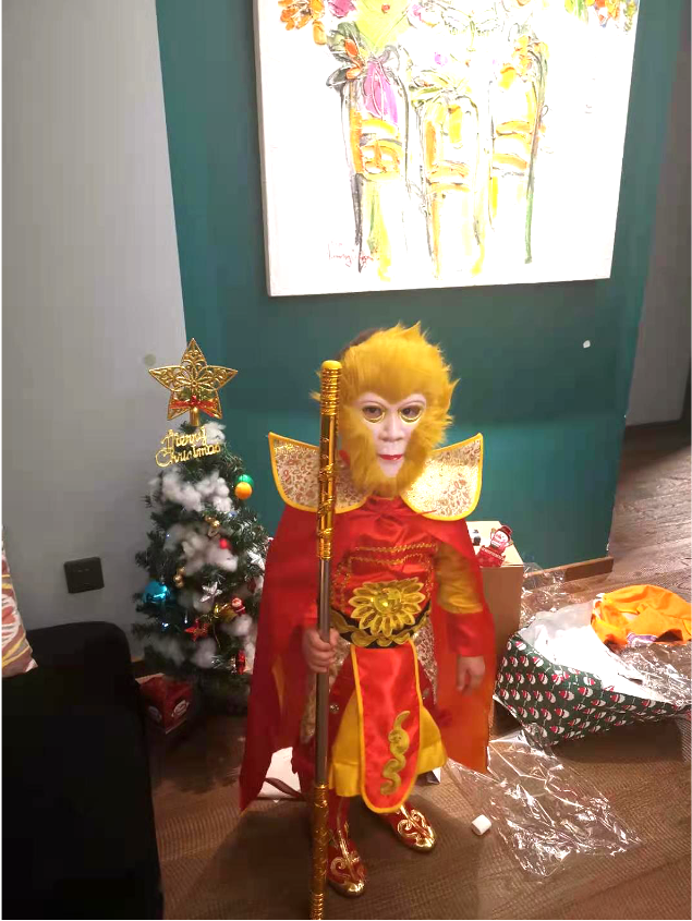 有一段時間他每天是這樣穿衣服的,他非常非常喜歡孫悟空。