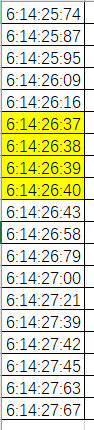 且在6:14:26這一秒的採集區間裏,出現瞭如下的連續採集時間間隔為0.01s