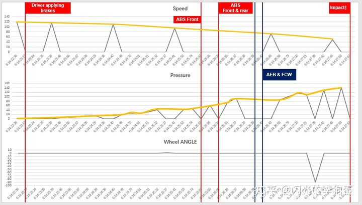 1. AEB作為安全系統,理應在ABS之前觸發,進入ABS之後還會繼續工作,而事實卻是,在ABS觸發之後,AEB和FCW才開始工作,如果是距離不夠,那ABS應該推着制動主缸直接達到最優剎車力並做浮動調整,如果AEB已經開始預判,那麼它應該更早出發,但AEB觸發時,車輛離碰撞只有1s左右的時間了(當然車速過快的確也是個因素,加上特斯拉不具備毫米波雷達);
