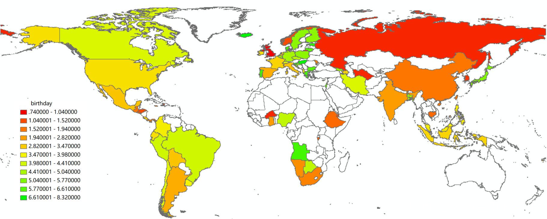 數據分析結果顯示(圖1-圖2),從全球的角度來看,中國等大中華地區的用户隱私保護意識也是比較強的。比如説在婚姻狀態和個人生日這樣的高度敏感的信息暴露方面中國、港澳台地區的用户隱私保護觀點不但強於西歐、美國等發達國家,也明顯強於東南亞、拉美以及非洲很多國家,同樣也明顯強於伊斯蘭文化中的伊朗等地區。