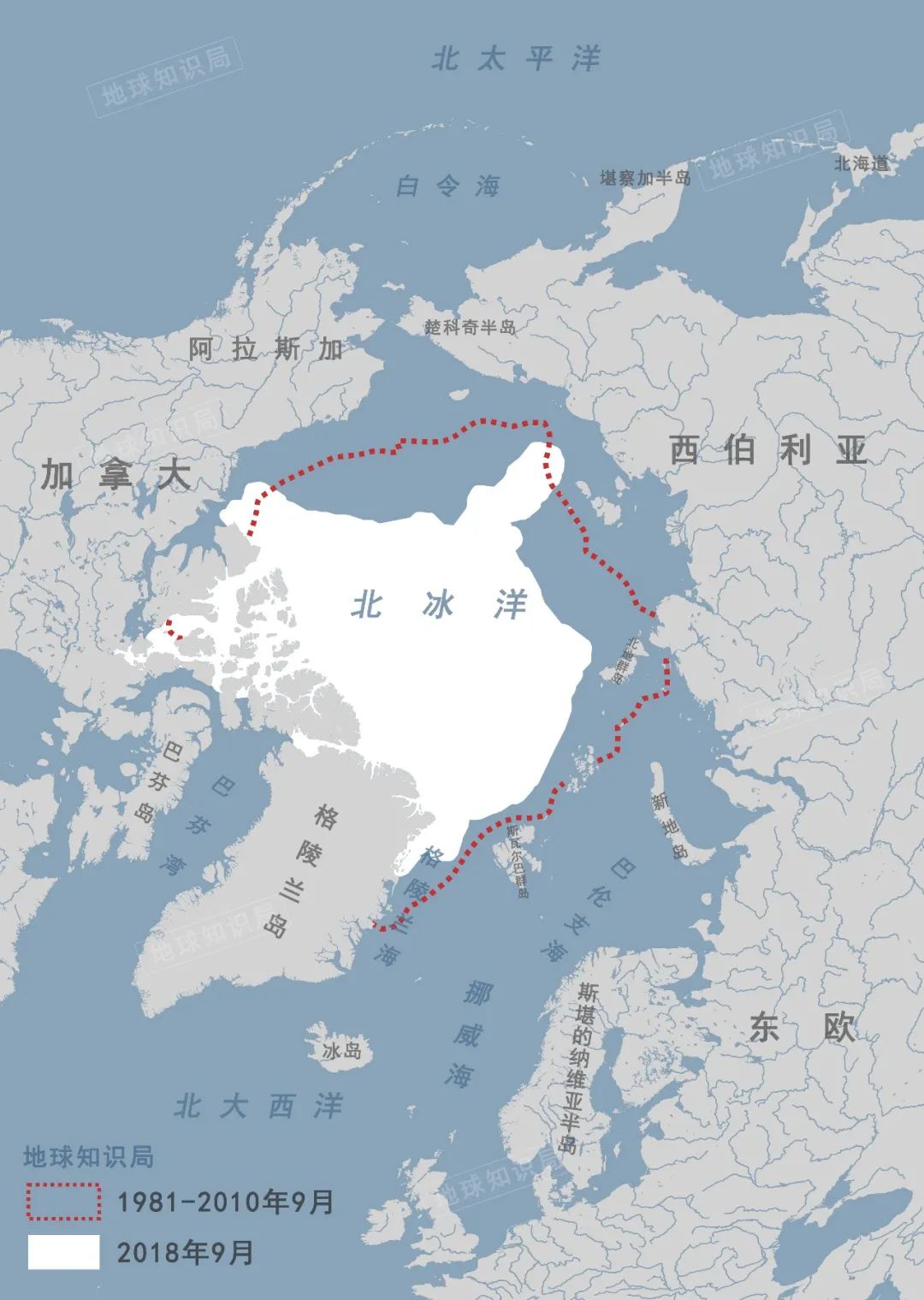 北冰洋相比幾十年前,海冰規模已經大大縮減▼