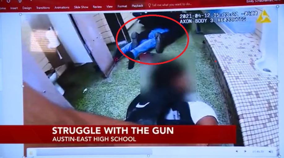 美國田納西州17歲黑人中學生湯普森(Anthony Thompson Jr)在學校廁所裏被警察射殺,引發爭議。應外界要求,當地檢方4月21日公開了執法記錄儀錄像。視頻顯示,湯普森隨身持有槍械,他在和警方肢體拉扯中被射殺。當地檢方認定,涉事警察合理自衞,不予起訴。