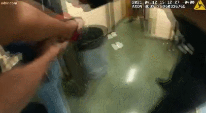 湯普森從廁所隔間出來後和警方發生衝突,執法記錄儀視頻片段