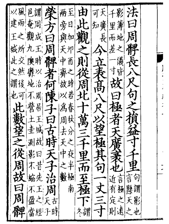 有了“日高”即天高距離後,再根據“周髀長八尺,勾之損益寸千里”的法則,“立表高八尺以望極,其勾一丈三寸。 由此觀之,則從周北十萬三千里而至極下”,這樣測算出了周地到北極星的距離是 103000 裏。