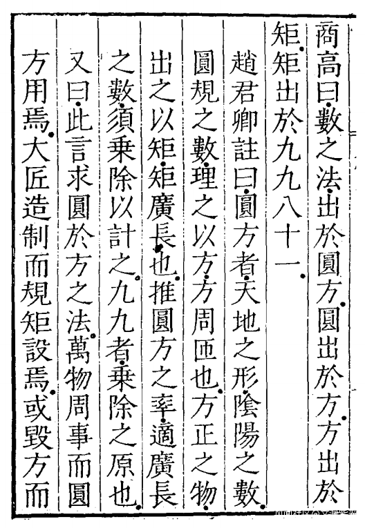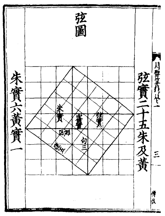 ⑤作者注:“勾, 圈套也”, 勾就是圓的周 圈 ,而《周髀算經》等先秦時期通常採用的圓周率就是 3,因此勾本身就是一 個名詞也是 一 個代表 3 的量詞 ;“股”也可做量詞,但股是否是代表 4 的量詞,已不可考。 從勾股定義勾三股四來看,勾股都應當有特定數量值的含義。