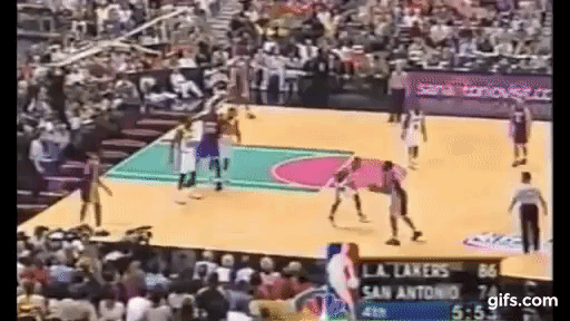 科比也知道很難直接吊傳給鯊魚,於是給底線再吊傳。