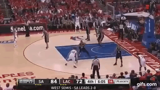鄧肯補位,控制對手突破路線時,不會大跨步出去嚇唬,通常是精準的兩個碎步,可能就是腳尖轉個方向,重心一個調整,就預備好了。