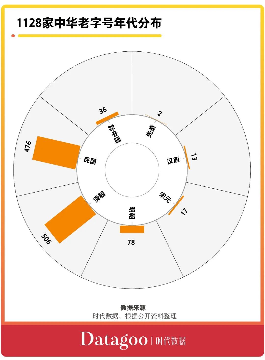 據統計,老字號品牌在有明以後得到更好保存,有清一代傳下的最多,佔數近半。一千多家老字號平均年齡在 150 歲左右,百年老店超 600 家。