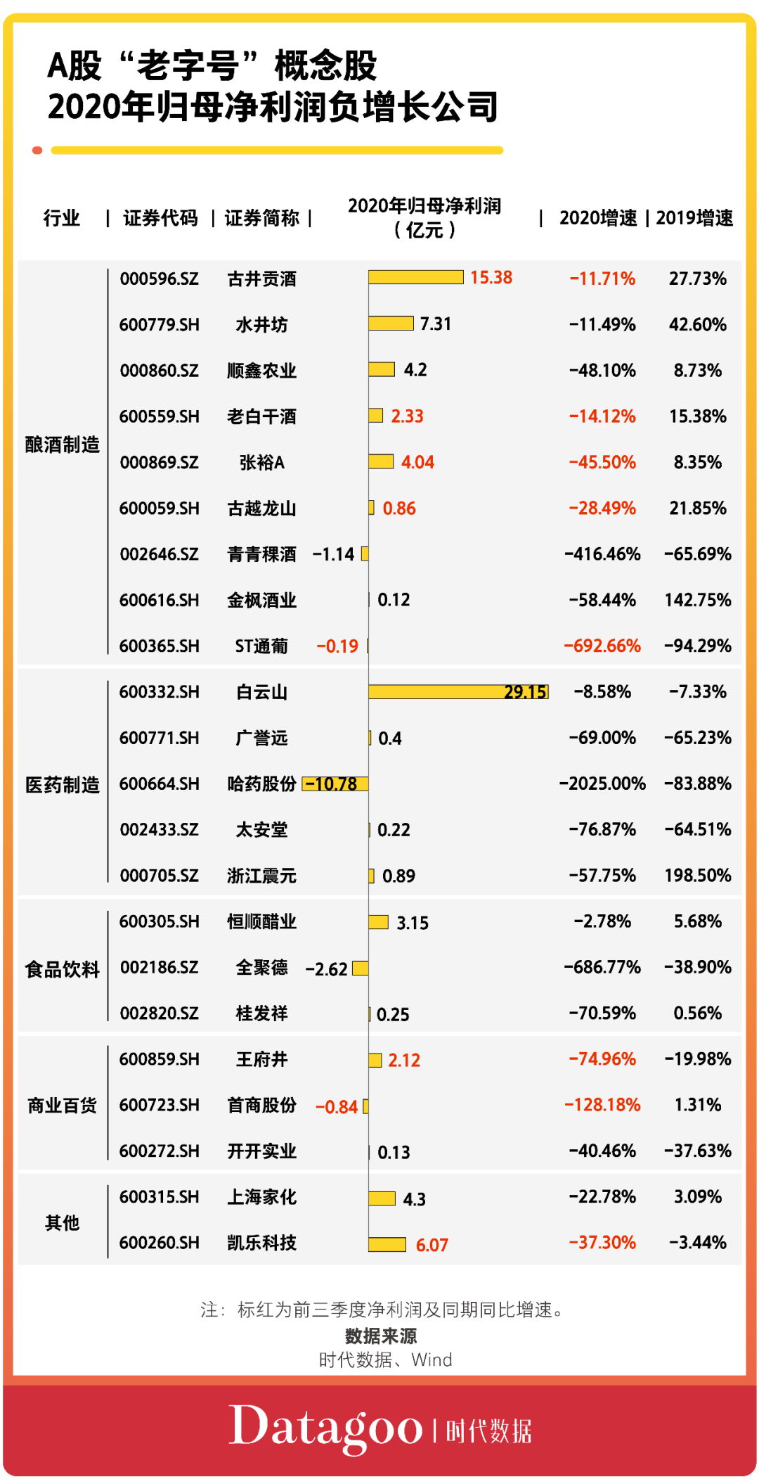 由於老字號企業並沒有全都公開經營信息,我們無從知曉每一家目前具體的經營情況。不過,在 Wind 上檢索到在 A 股“老字號”概念股的上市公司共有 48 家,透過他們,我們或許能管中窺豹。